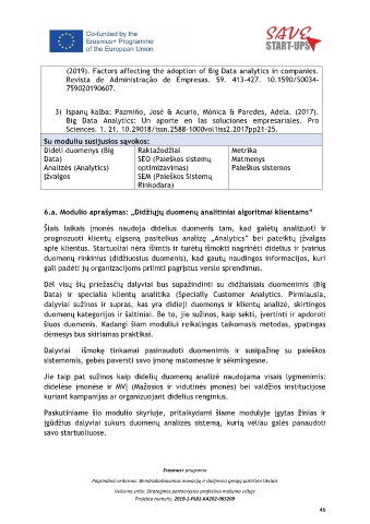 6.a. Modulio aprašymas: „Didžiųjų duomenų analitiniai algoritmai klientams“