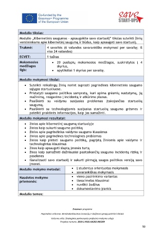 Modulio „Kibernetinis saugumas - apsaugokite savo startuolį“ tikslas suteikti žinių