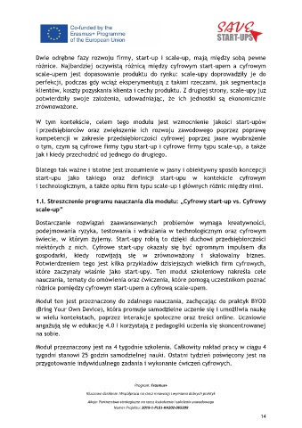1.l. Streszczenie programu nauczania dla modułu: „Cyfrowy start-up vs. Cyfrowy